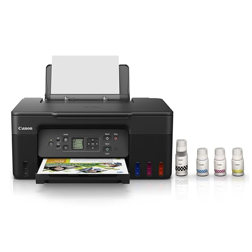 - Special Features: Borderless Print, 1.3 inch display (Monochrome)with backlight; Ideal Usage: Home, Home Office; Included Components: Printer, Power Cord, USB cable, Instruction Manual, 1 set of GI71 Cyan, Magenta, Yellow and Black ink bottles